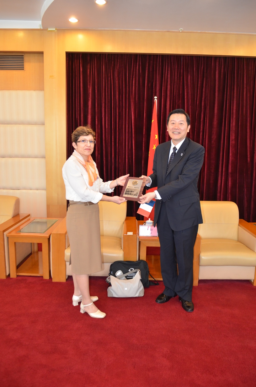 方凡泉对Garino一行的来访表示欢迎,并介绍了广外在交换生方面的情况。他说道,广外和世界上190多所大学和研究机构签订了合作备忘录,其中和90所有合作交流项目。广外去年派出的交换生有527名,占到在校生的9%。外国留学生有1200人,占到在校学生的6.5%,外籍教师有72名,占到在校教师的6%。在五年内,我校望这三个指标达到10%。方凡泉表示非常愿意发展和格勒诺布尔第三大学的合作项目。