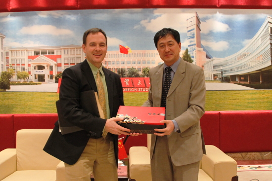 本网讯 3月15日下午,美国马里兰大学美华中心主任戴博(Robert Daly)来访我校。我校党委书记隋广军,国际合作与交流处处长焦方太,翻译学院院长平洪、党委书记高云坚、副书记杜焕君在贵宾厅热情接待了来宾。戴博此行主要是面试招收将赴马里兰大学实习的学生并与我校洽谈相关合作事宜。