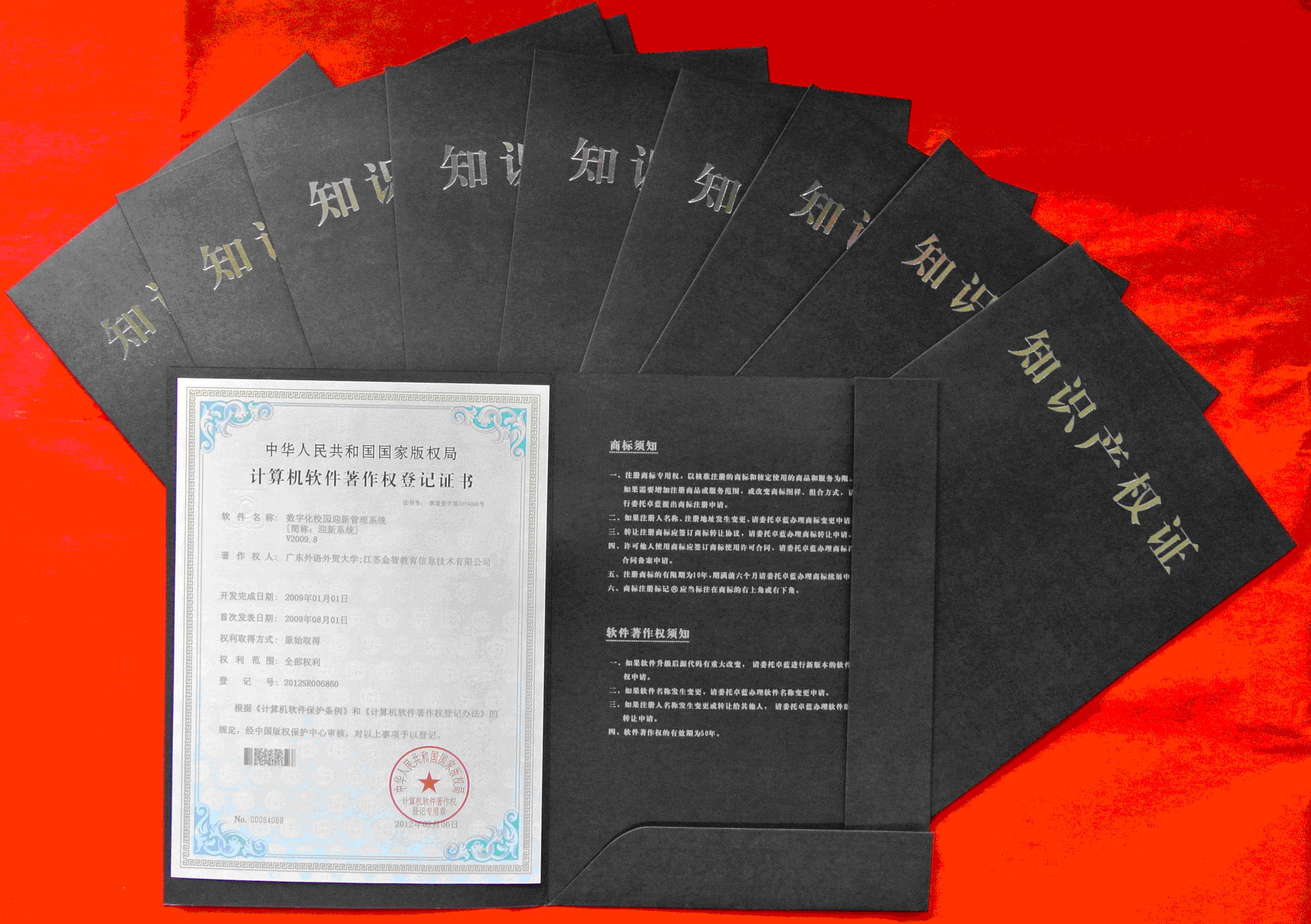 本网讯 近日,我校电子校务系统(又称“数字广外”)成功荣获国家版权局颁发的11项计算机软件著作权登记证书。
