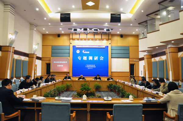 调研之前,隋广军首先在贵宾厅对调研组一行表示热烈欢迎,并就我校的教学质量、学科建设、地方性服务三方面简要介绍了我校近年来的取得的发展以及广东国际战略研究院的情况。他提出,我校未来建设的目标是进一步突出国际化特色,争取在国际经济贸易与国际人才的培养两方面占据广东省“龙头”位置。