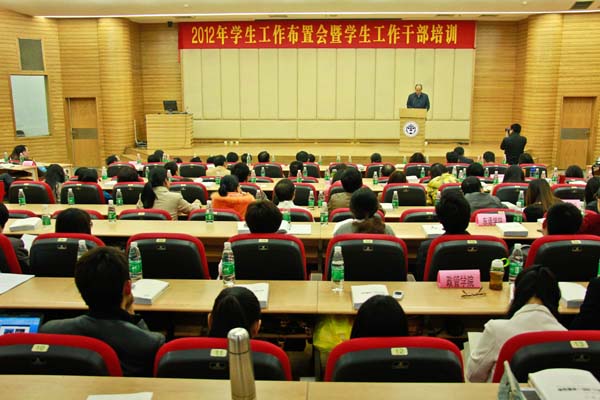 本网讯 3月2日下午,2012年学生工作布置会暨学生工作干部培训在北校区图书馆多功能报告厅举行。校党委副书记许国彬、卢景辉,关工委、学生工作(部)处、校团委、学生就业指导中心负责人,各学院分管学生工作负责人及全体辅导员等出席了会议。会议由学生处处长植秀聪主持。