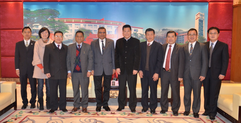 本网讯 1月10日下午,印度驻广州总领事潘迪(Indra Mani PANDY)和文化领事穆齐亚(Dhiraj MUKHIA)一行到访我校。我校校长仲伟合在北校区一楼贵宾厅亲切会见来宾。陪同出席还有校党委副书记许国彬、国际处处长焦方太、东语学院院长陈多友、留学生学院院长梁学宏和印地语教师胡瑞及田克萍等。