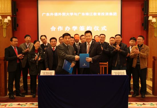 最后,双方签署了《广东外语外贸大学与珠江教育投资集团合作办学协议书》。