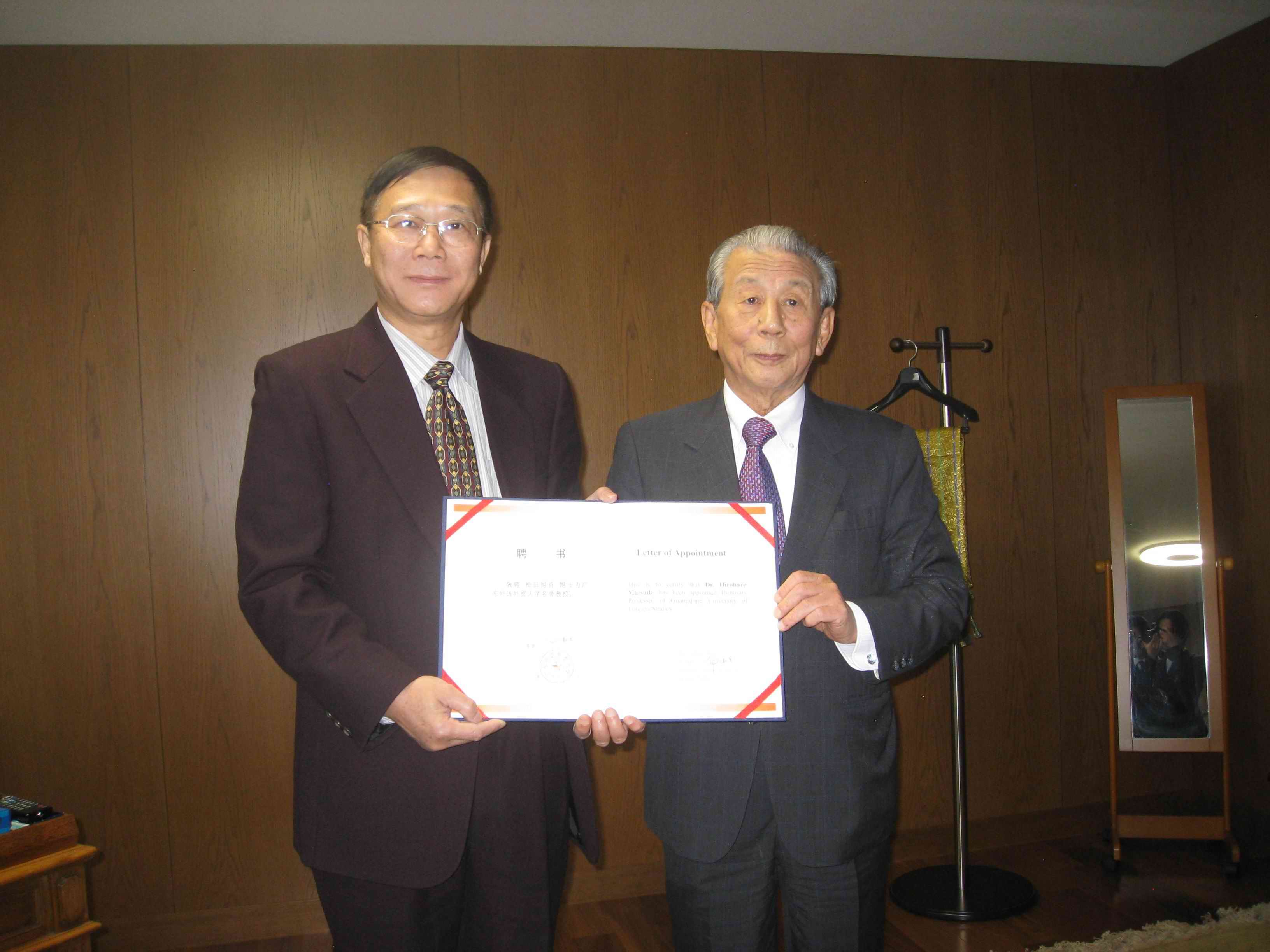12月2日,陈建平会见了杏林大学理事长松田博青。陈建平首先代表学校宣读了关于授予松田博青广东外语外贸大学名誉教授的决定,并向松田博青颁发了聘书。松田博青表示,他对于自己获此殊荣深感荣幸,并表示一定会为促进两校的多方面交流合作竭尽全力。接着,双方就扩大师资与学生互派的规模、尽快推进中日同声传译等项目合作进行了深入的会谈。