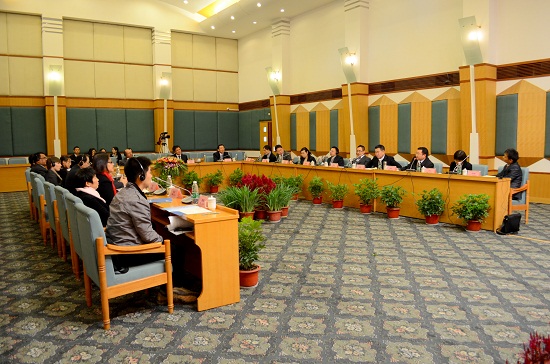 方凡泉就2011年我校孔子学院工作作了总结报告。他在报告中概述了本年度孔子学院的运行情况并分享了“因地制宜,服务于当地社会需要”、“自主开发本土教材,积极推广汉办教材”等孔子学院工作经验和做法。他提出,在支持孔子学院建设的过程中,我校采取了健全组织结构、提高外派人员待遇、加强师资选拔及培训等措施,并以领导互访、师生交流和科研合作等方式加强校际合作。