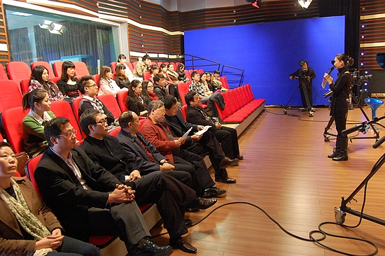 巡视组一行在新闻学院演播厅观摩教学活动
