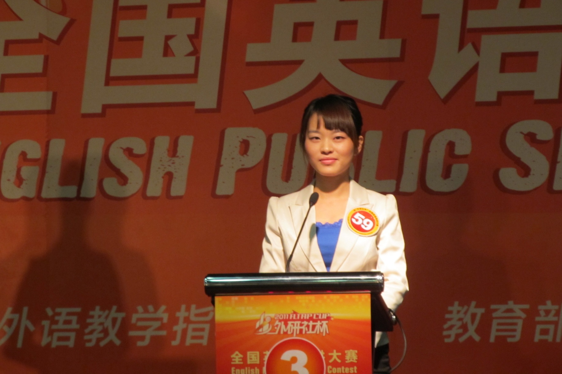 本网讯 12月5日-9日,2011“外研社杯”全国英语演讲大赛在北京外研社国际会议中心隆重举行。我校选手、高级翻译学院2011级MA研究生刘慧以优异的成绩荣获全国一等奖以及微博人气奖。