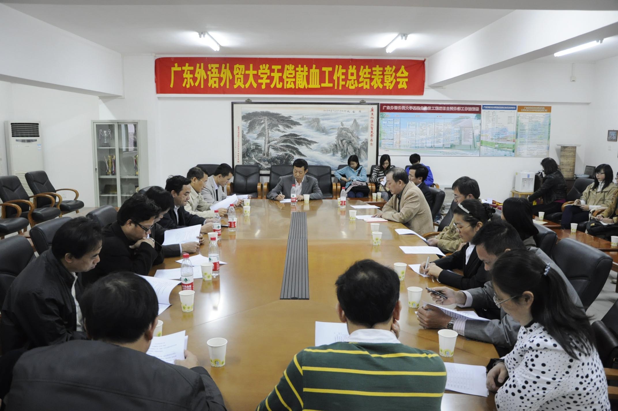 本网讯 12月8日下午,广外红十字会无偿献血小组2011年度总结大会在我校北校区后勤处会议室举行。我校党委副书记许国彬、后勤处处长何传添、后勤处副处长周知以及各学院的副书记出席了本次会议。会议由许国彬主持。