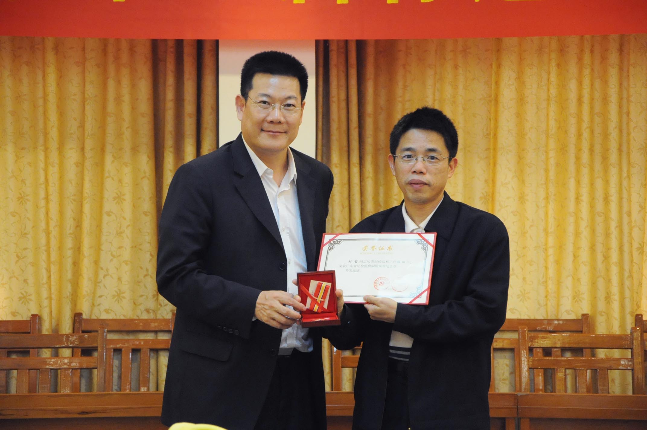 仲伟合为广东省纪检铜质奖章获得者颁发奖章