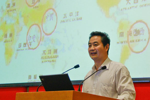 江时学研究员以一张题为“大熊猫拥抱巨嘴鸟:中国与巴西的关系”的幻灯片开头,借用两国的象征性动物,引出中国和巴西的经贸合作问题。首先简介了中国与巴西的外交关系史及其经贸合作状况,阐明中巴合作上一些问题。其次,提醒注意中巴文化差异对经贸关系的影响,并通过一个例子来说明中国企业在开拓巴西市场的过程中不了解当地的文化,使得精心准备的展销会成为当地人的笑料。就此,他强调,中方企业在开拓巴西市场时应充分了解当地的风土人情,用当地人可以接受的方式展销产品。最后,他以一幅生动有趣的漫画结束论题,漫画大致内容为巨嘴鸟和大熊猫“谈恋爱”,但双方的脸上都充满戒备的表情。这也揭示了中国与巴西的关系正如“恋爱”关系,尚未稳定且充满猜忌。因此,双方需加强合作,深化互信,努力实现中巴两国长期的、稳定的、战略性的互利合作关系。
