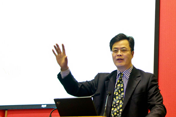 左连村教授借用当今学术界热议的“龙象之争”引出“金砖国家合作机制对中印经贸关系的影响及其因应思路”这个话题。他谈到,金砖国家合作机制促进贸易保护主义放松,为中印两国的产品和企业进入双方的市场带来准入机遇。“近几年,广州的印度人特别多”说明中印贸易往来日益紧密。他强调,印度人口多,需求层次多,消费水平参差不齐,中印经贸合作机会多,潜力大,应加强对印度市场特点的研究,实施有目的、有方向、有步骤的经贸合作战略,并可以在农业、能源和服务领域加强合作。