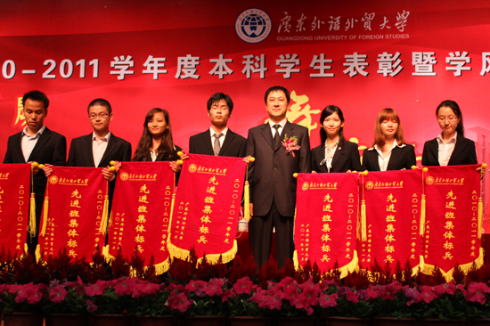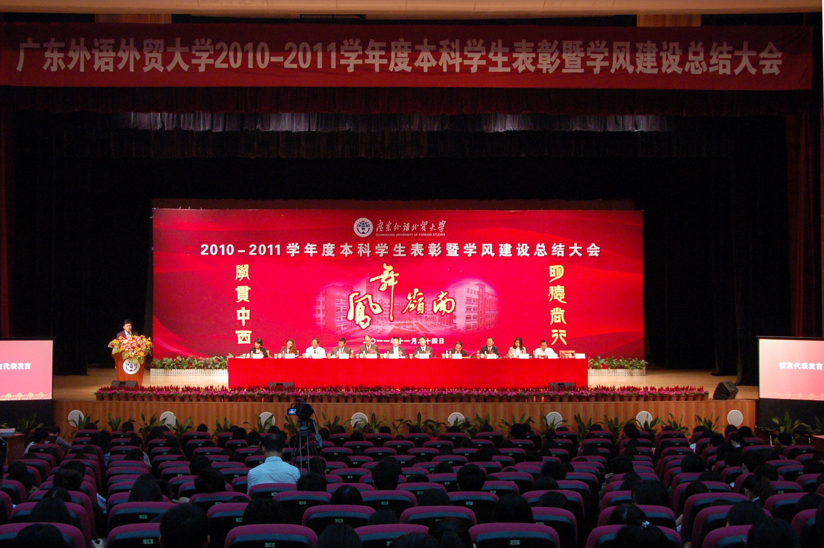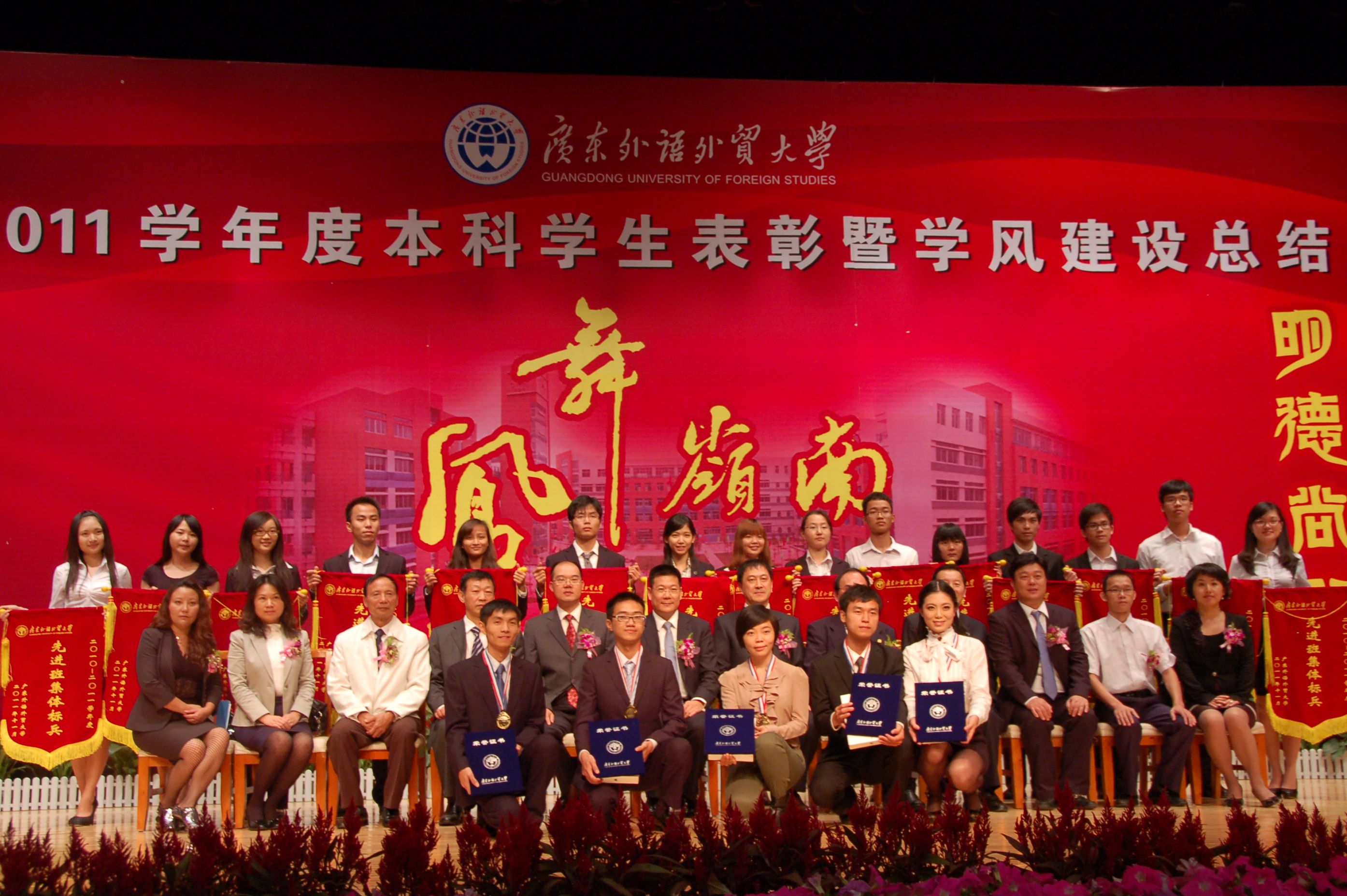 一段广外宣传视频回顾了一年以来我校学风校风建设工作的丰硕成果,展现了获奖班级的风采和个人的良好风貌;一首配乐诗朗诵《广外,梦开始的地方》道不尽广外情怀,在庄严的奏唱国歌仪式过后,表彰大会正式开始。