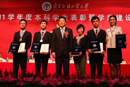 隋广军对获奖学生及全体本科生提出两点希望。一是希望同学们坚守良知,明德尚行。他援引近期“小悦悦”的事例,指出广外学生更应保持对生命的尊重,勿娱乐生命,应经常自省,自觉服务他人、奉献社会,做个有德、有才、有情、有义、勇于承担、甘于奉献的人;二是希望同学们既要志存高远又要脚踏实地。他以苹果创始人乔布斯以“活着为改变社会”为例,勉励学生要立长志、立大志。同时他也提醒同学们不能好高骛远。无论在校园还是社会中,都要从基层做起,从小处着手“在学校和社会这两个大熔炉里用求真务实的态度与超常的毅力踏实学习,达到自己理想的顶峰”。像“亚运会”“大运会”的志愿者们一样,吃苦耐劳,默默奉献。