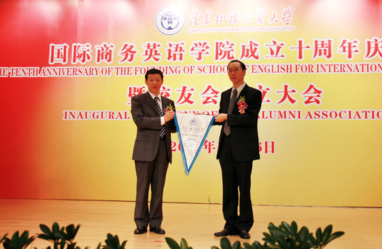 许国彬代表学校向商英学院校友会授旗