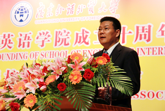 随后,叶兴国代表兄弟院校对商英学院成立十周年表达了热烈的祝贺。他高度赞扬了广外商务英语发展成熟,共识度高。他说,在全国国际商务英语研讨会中,广外商英起到了引领和示范的作用,在专业建设方面对全国起到了积极的影响。
