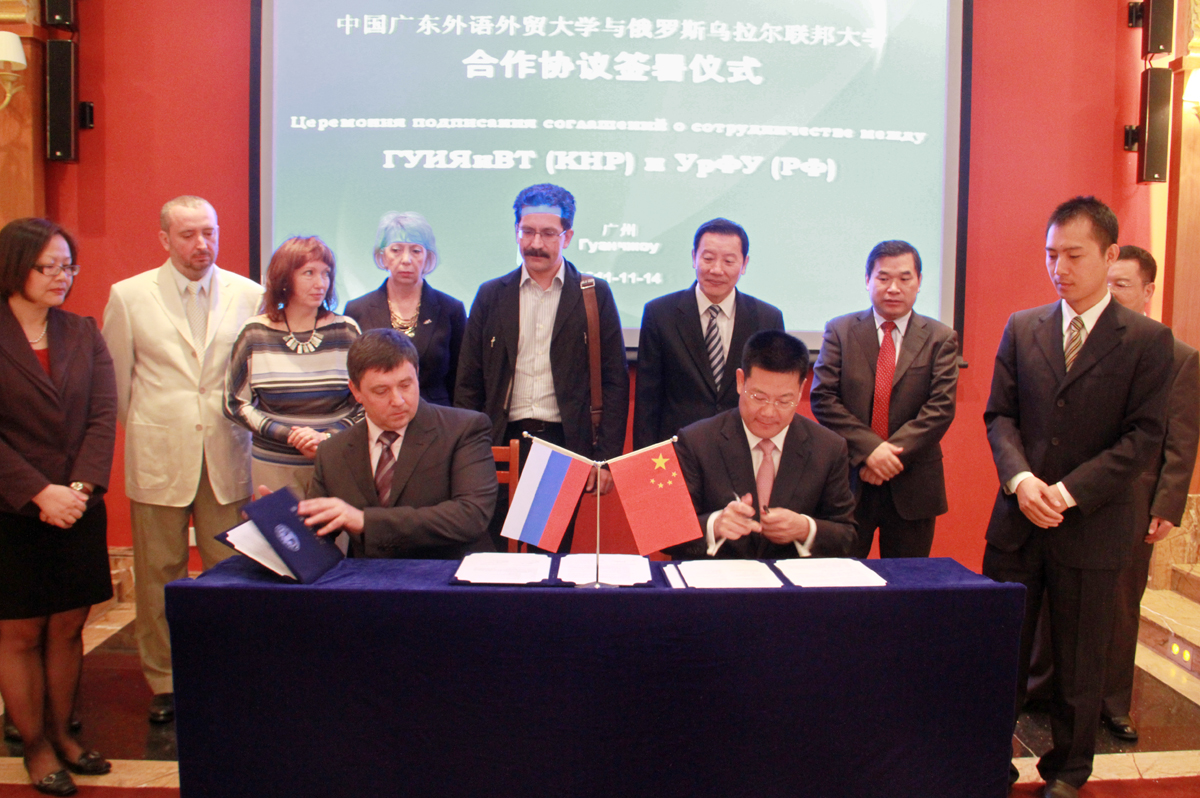 2007年,广外与俄罗斯国立乌拉尔高尔基大学合作建孔子学院,签署了合作协议,4年后,乌拉尔国立技术大学和乌拉尔国立高尔基大学合并,成为现在的俄罗斯乌拉尔联邦大学.