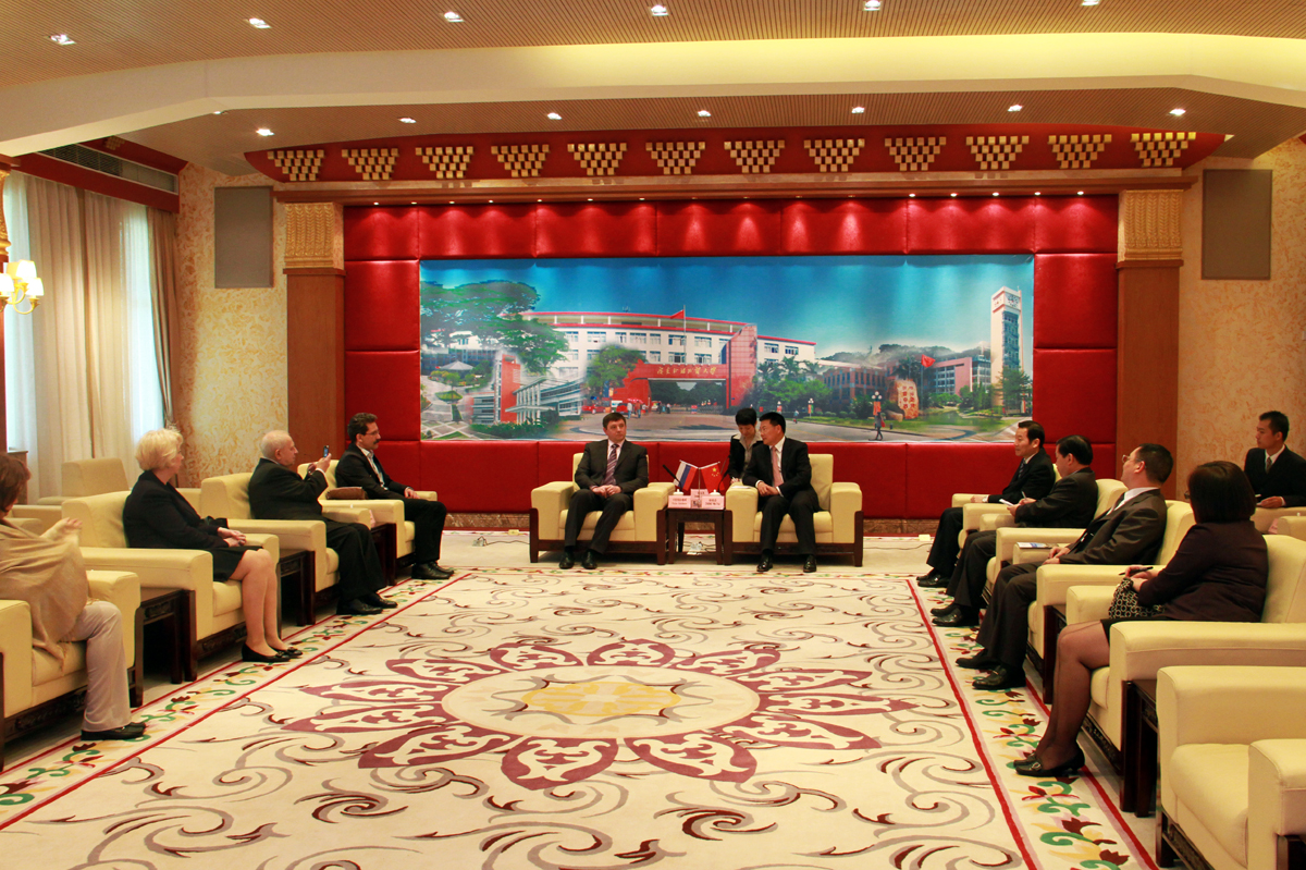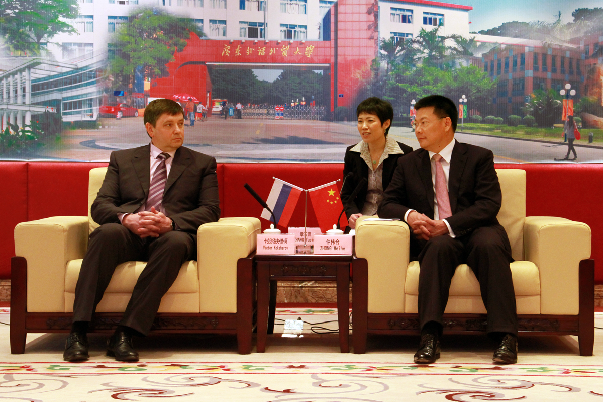 仲伟合对卡克沙洛夫·维·阿(Victor Koksharov)的邀请给予了积极的回应,并承诺将派遣中文教师前往乌拉尔联邦大学进行讲学。他同时表示欢迎乌拉尔联邦大学的教授和同学前来广外进行交流和学习。随后两校校长签署了合作协议,这是继2007年后双方友好合作后的又一见证,它预示着两校的合作踏上了更加稳定、持续的阶段。