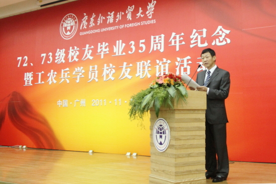 参加活动的有我校原党委书记徐真华、原校长黄建华、原广州外国语学院副院长黎导、老教师代表及72、73级的100多位校友。校党委书记隋广军、副书记许国彬、党办校办主任刘志军、“三会”秘书长兼党办校办副主任谢伟光等陪同出席。