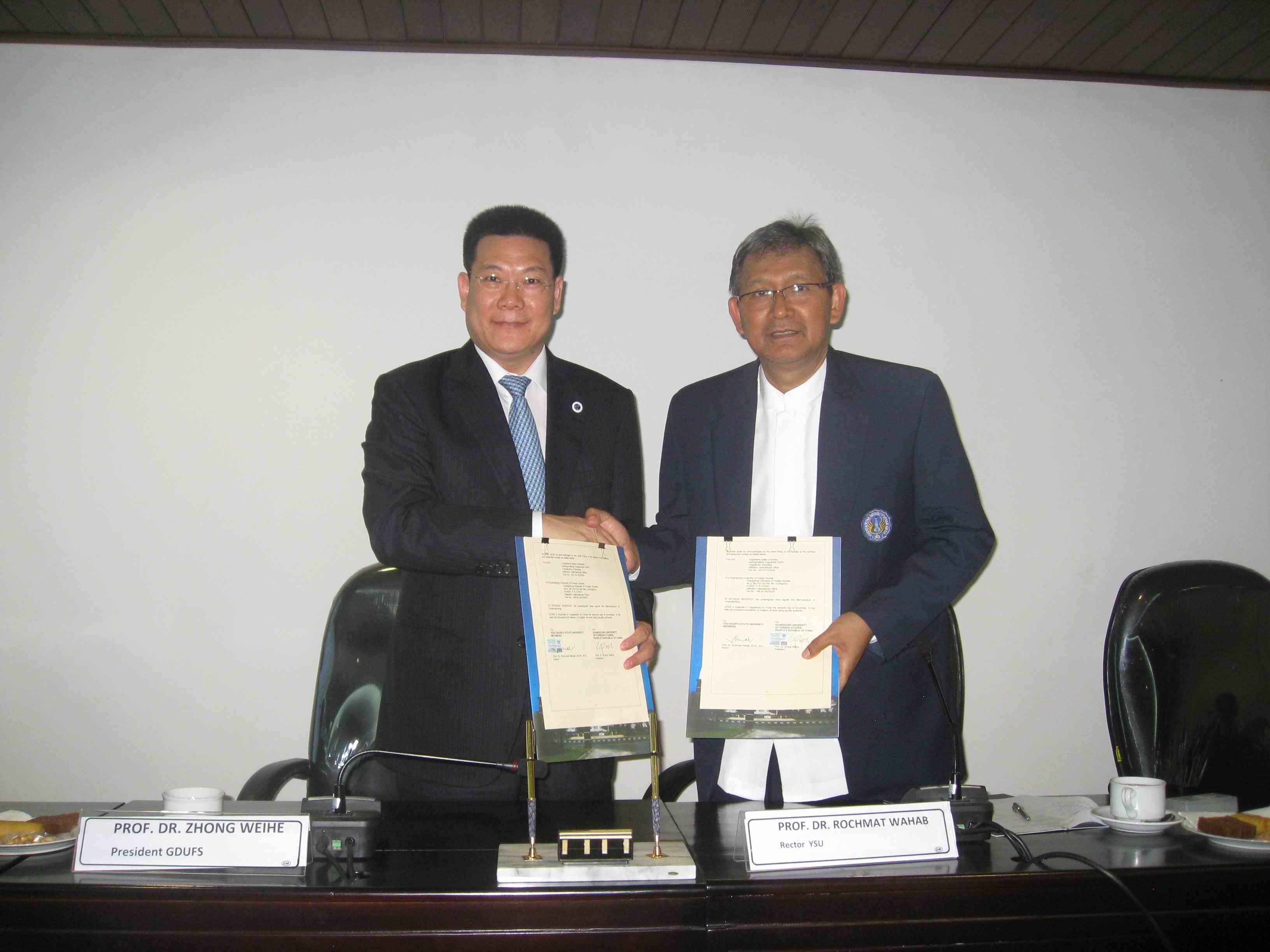 11月11日上午,仲伟合会见了日惹国立大学校长罗玛特·瓦哈卜。仲伟合还与罗玛特·瓦哈卜共同签署了校际合作协议书。签约仪式后,仲伟合应邀发表了题为“经济全球化背景下的高等教育国际化”的主题演讲,受到了与会者的高度评价。该校校领导、职能部门负责人、学院院长及教授学者共50多人出席了演讲会。