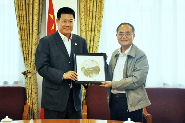随后,仲伟合和张坚代表两校交换了纪念品并合影留念。