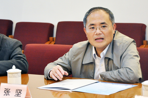 仲伟合对张坚一行的到来表示热烈欢迎,并介绍我校的基本情况以及翻译学科的发展历程。他指出,我校翻译专业的“两个翅膀”分别是外语类和财经政法类。这两个方向是根据我校的总体专业设置情况而决定的。他介绍到,我校的翻译专业起步早,发展好:早在1993年,我校英文学院便开设了专业的翻译课程;1997年,成立了全国首个翻译系;2005年正式成立翻译学院,并开始招收硕士研究生。历年来,翻译学院为社会输送了一大批优秀的专业人才,拥有较高的社会美誉度。