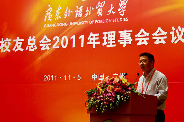 会议期间,校友总会秘书长谢伟光作2011年度校友工作报告,他指出,在本年度的工作中,从五个方面的校友会工作“加大了力度”,即校领导加大了会见、走访校友力度;加大了校友信息资料的收集和整理力度;加大了校友网络的拓展与建设力度;加大了宣传载体建设和宣传母校力度,以及加大了回馈母校渠道的拓展力度。与此同时,他还提出校友之间的联系、组织队伍建设还仍需提高等问题,并明确了今后校友在工作中要努力的四个方向。另外,他还介绍了近期开展的校友工作项目,包括广外教育发展基金会及龙卡基金项目;年度捐赠项目;南校区美化校园认捐项目等。