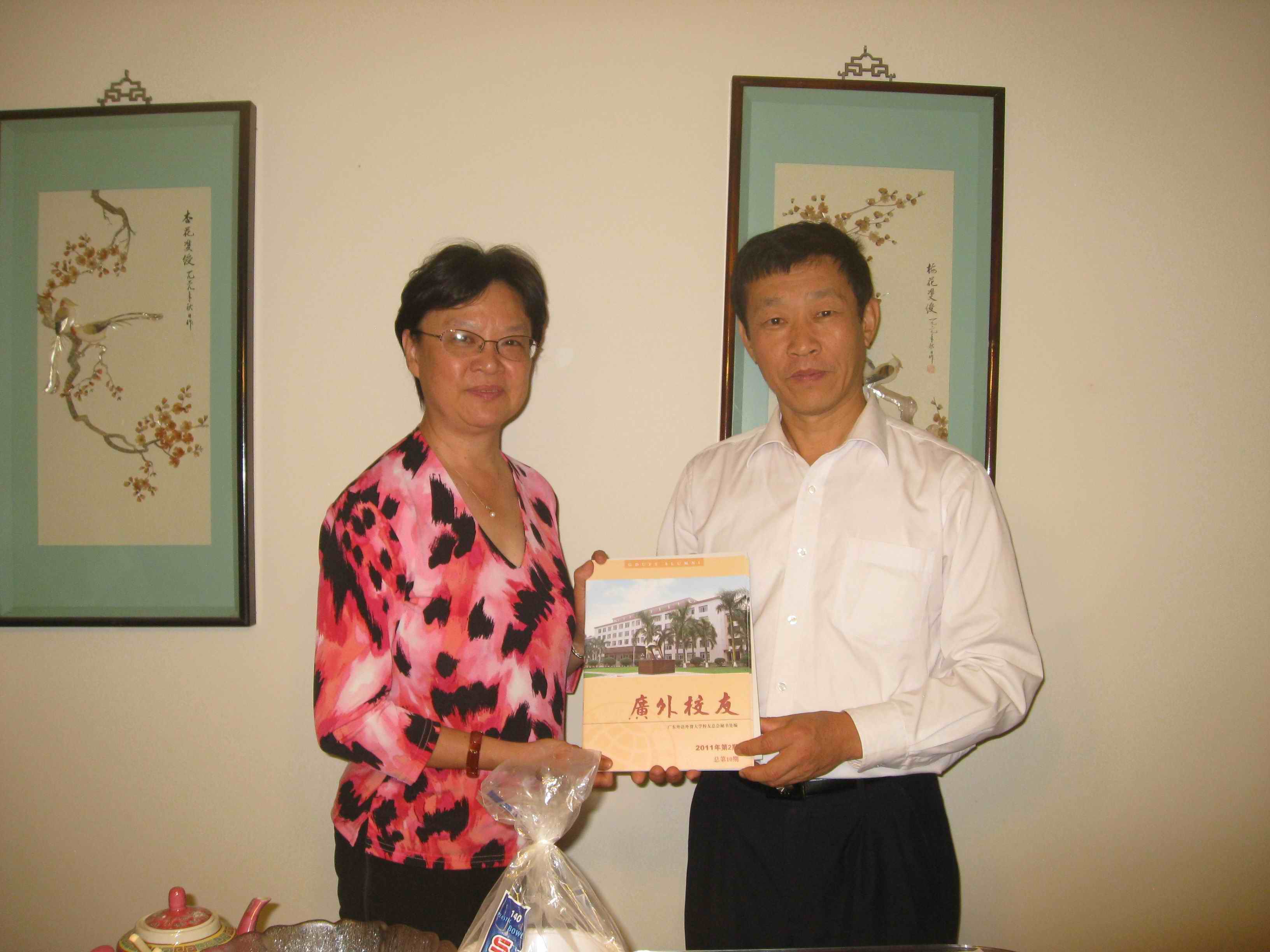 向校友赠送最新一期《广外校友》