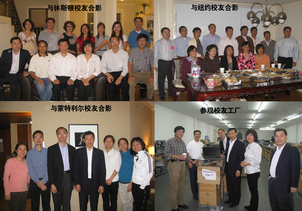 许国彬一行拜访了我校校友、中国驻温哥华总领馆梁梳根总领事。休斯顿、纽约等地校友设家宴接待许国彬一行,还陪同参观校友创办的实业。在与蒙特利尔校友座谈会上,许国彬建议在加拿大三个主要城市成立校友分会,以便更好地开展工作,得到积极响应,并决定由杨钊洪、何晓婷、梁梅泰、欧阳瑞芝等作为筹备组成员。