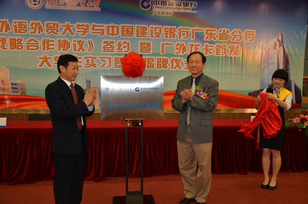 许国彬、李锦海为广外建行大学生实习基地揭牌。