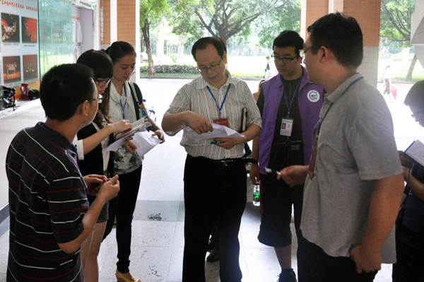 早上8:30,上课的铃声一响,检查团便在南校教学楼A栋入口开展检查工作。检查发现,虽已过了上课的时间,但仍有极个同学陆陆续续地向教学楼走来。检查人员还仔细询问了每个上课班级的负责人当堂课的考勤情况,对每个班的出勤人数进行了详细的核查;并在临近下课时对早退情况进行了抽查。根据检查汇总的情况,虽有极少数同学旷课、迟到或在课堂上吃早餐,但大部分课室上课情况良好,学生教师基本到位,学生上课精神面貌良好。