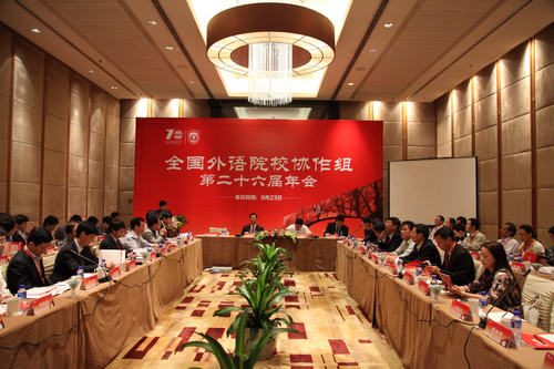 本网讯 9月23日,全国外语院校协作组第26届年会在北京外国语大学召开。全国16所外语院校的党委书记、校(院)长、办公室主任、教务处处长、研究生处处长等近60人参加会议。我校党委书记隋广军、党委副书记陈建平、研究生处处长袁泉和党办校办副主任谢伟光等出席会议。