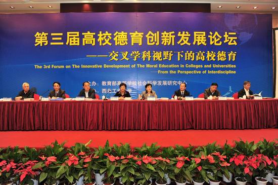 本网讯 9月22日,第三届高校德育创新发展论坛在西安隆重开幕。广东省教育厅副厅长李小鲁巡视员同期出席了论坛,我校党委副书记许国彬教授作为专家代表被特邀参加了此论坛。据了解,为期两天的本届论坛,是由教育部高等学校社会科学发展研究中心主办,西北工业大学承办,主题为“交叉学科视野下的高校德育”。