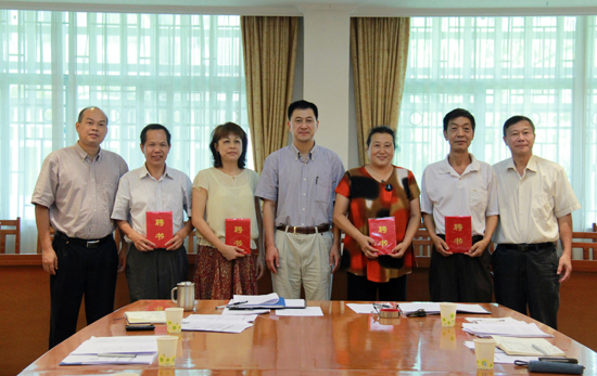 隋广军、陈建平、卢景辉与新聘组织员合影