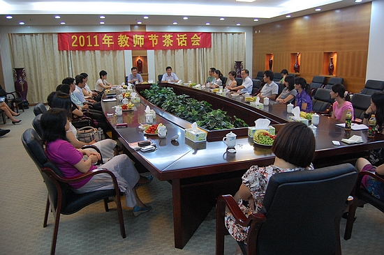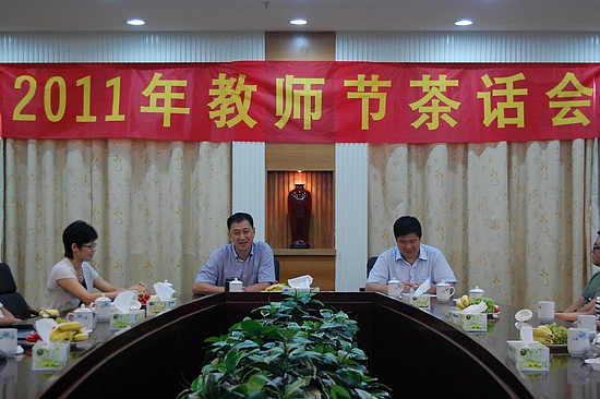 9月7日下午,2011年教师节茶话会在南北校同时举行。校党委书记隋广军、校长仲伟合分别出席南北校区的茶话会,与教师代表交心谈心。 校党委书记隋广军、副校长陈德萍出席了南校区的茶话会。茶话会伊始,隋广军首先向各教职工致以衷心的节日问候,并感谢全体老师对我校教学工作的辛勤付出。隋广军指出,教师的地位在今天有了很大的提升,我校教职工的工资待遇每年都在提升。我校鲜明的国际化办学特色受到越来越多考生的青睐,录取分数线节节攀升,生源持续稳步提高。我校在社会服务方面做得相当出色, “2010广州亚运会我校有7000多志愿者投入了工作,今年又有700多名同学参加了深圳大运会,尤其在小语种中发挥了关键作用。”隋广军还提到,去年我校负责的15份课题和报告对广东省的建设起到了很大的促进作用。
