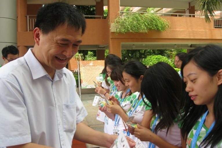 随后,隋广军、许国彬一行来到深圳市龙城高级中学看望和慰问我校参与大运会新闻服务的UNS志愿者,参与慰问的还有新华社广东分社UNS赛时运行负责人何惠飞。