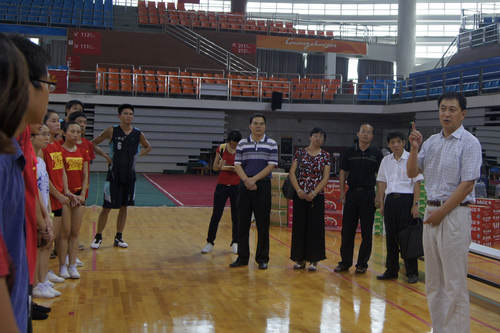 随后,隋广军一行又来到了体育馆和兵乓球室慰问了毽球队、健美操队、篮球队、乒乓球队等运动队伍,隋广军亲切地询问运动员们的训练安排与生活情况,并表示:“学校将在政策上、条件上全力支持大家”!