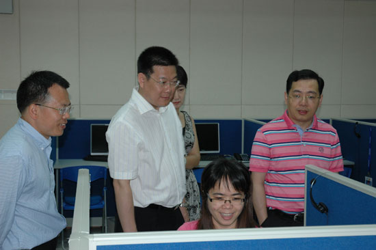 随后,在仲伟合等陪同下,黄常开一行来到广外大运电话多语言服务中心参观。仲伟合介绍,外国友人一旦在语言上遇到困难,只需要拨通热线电话,值班的志愿者就可以提供服务。2010年广州亚运会期间,多语言服务中心发挥语言桥梁作用,期间接通的电话数更是超过北京奥运会。广外利用外语学科优势,为整个华南地区,乃至全国举办大型国际比赛提供了优质的语言服务。南都相关领导也表示,广外外语优势明显,将来可以在多语言翻译上合作。