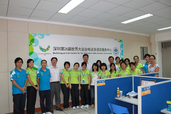 北外领导题词 据悉,多语言服务中心从8月1日开始运行起,中心已经接到600多个电话,日均电话量达50个,已超过亚运会多语言服务中心的日均话务量。寻求口译帮助的人员主要有志愿者、安保人员、大运会工作人员、出租车司机、医务人员、各国技术官员、运动员等。口译内容涉及交通、医疗、购买电话卡、订机票、洗衣服、联系训练场馆、更换比赛项目等多方面,电话口译志愿者们都能够圆满解决。