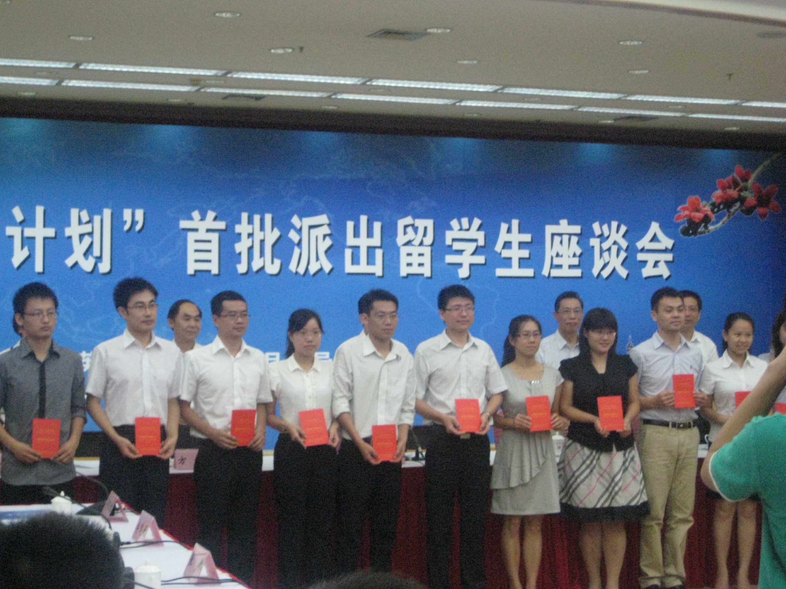 本网讯 7月26日上午,广州市“菁英计划”留学项目首批派出留学生座谈会在市委礼堂召开。广东省委常委、广州市委书记张广宁、中国工程院院士钟南山教授等出席了会议。会议由广州市副市长贡儿珍主持。我校入选该项目的2011届硕士研究生刘作珍(法学院)和余雯(管理学院)参加了此次会议。