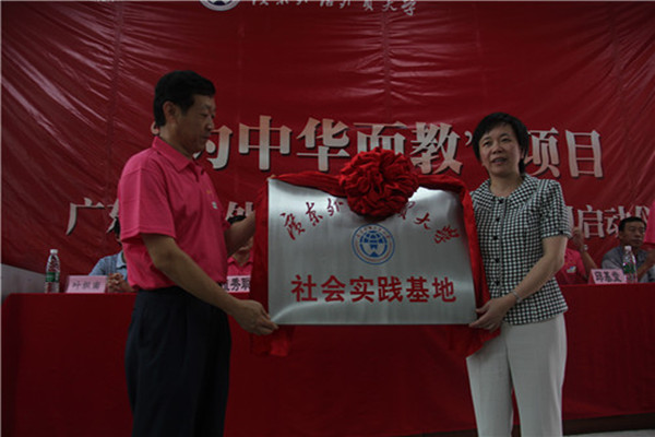 接着,许国彬与陈秋远签署了社会实践基地合作协议并举行了实践基地揭牌和夏令营服务队授旗仪式。