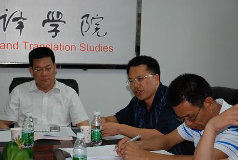 本网讯 7月11日,高级翻译学院学习胡锦涛“七一”讲话精神师生党员座谈会举行。校党委副书记、校长仲伟合,校党委副书记许国彬,校党委宣传部部长胡文涛、翻译学院和翻译学研究中心党政领导、教工党员和学生党员代表出席了本次座谈会。座谈会由学院党委书记高云坚主持。