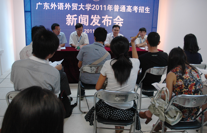 今年广外招生工作吸引了省内各大新闻媒体的高度关注。在今天广外举行的招生新闻发布会上,南方日报、羊城晚报、广州日报、广东电视台、南方电视台、广州电视台等十几家省内主流媒体前来采访。我校党委副书记陈建平,副校长刘建达,教务处处长、招生办主任詹文都,党委宣传部部长胡文涛出席了新闻发布会,介绍了广外今年招生的情况并回答了记者的提问。