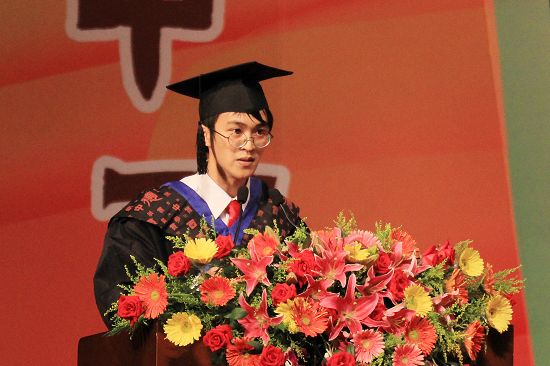 商英学院的沈璐老师在代表教师发言时,则以细节取胜,展示了毕业生四年大学生活的多个细节。她谈到,从艰苦的军训、紧张的专四、毕业论文到忙碌的求职,在时光飞逝中,各种困难也都成了过眼云烟,同学们的四年大学生涯也在紧张与活泼中度过。对此,沈璐提出自己的人生哲学:“不是故事结局不够好,而是对故事结局要求太高”,希望毕业生坦然接受挑战,冷静看待成功。公开学院廖景智老师则给同学们提出三点建议——真诚做人,学会感恩;脚踏实地,勇于进取;重视创新,发现自我。