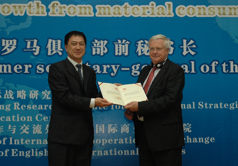 本网讯 6月30日,罗马俱乐部前秘书长马丁•李访问我校,并在北校区多功能报告厅作了题为“转变经济增长模式:从物耗型到注重生命质量”的演讲。该讲座是广东国际战略研究院云山大讲坛的第三讲。广东省发改委副主任鲁修禄,我校党委书记隋广军以及广东省外经贸厅、广东省政府发展研究中心、佛山市发改局、佛山市南海区金融办官的代表,企业代表,我校师生代表出席了讲座。讲座由我校MBA中心主任孟庆轩主持。