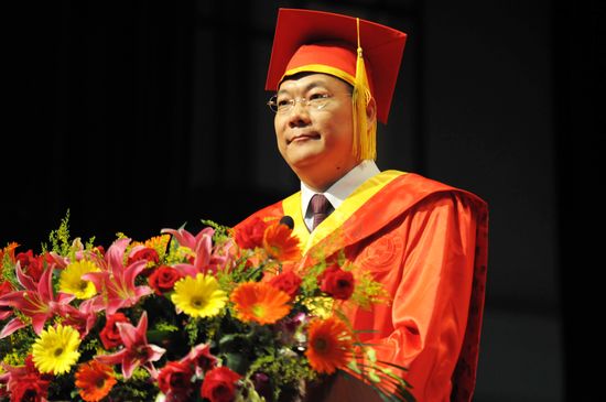 庄严而动情的演讲却也不乏诙谐与幽默,“广外是一所CPU(Crazy Presentation University)”、在这里既有吴怡‘姐的微笑’,又有栋笃笑‘哥的传说’。“神马都是浮云”、“许三多”、“杜拉拉升职记”等热词的引用搏得毕业生们喝彩声不断。最后,仲伟合寄语:“多年以后,你们来,或者不来,母校就在这里,不舍不弃;见,或者不见,我们的心永在一起,不分不离!”