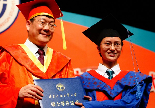 在此后的近一个小时中,仲伟合为商英学院和MBA教育中心的毕业生们逐一拨穗并颁发学位证书。在激动人心的音乐中,颁奖台上不时出现毕业生与校长相拥等温馨画面,台下也时时响起雷动的掌声,会场一片澎湃。