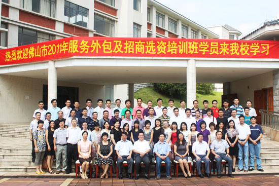 本网讯 6月20日上午,佛山市2011年服务外包及招商选资培训班开学典礼在我校八角楼会议厅举行。出席开学典礼的领导嘉宾有佛山市委党校副校长李忠、我校副校长顾也力、授课教师代表魏作磊以及国际服务外包研究院所有人员,我校组织部副部长麦培年主持了开学典礼。培训班由我校国际服务外包研究院和佛山市党校共同管理,我校国际服务外包研究院负责制定教学计划、师资安排和跟踪教学计划的执行,佛山市委党校则负责学员的考勤与管理工作。本次培训班60名学员分别来自佛山市、区、镇的各级单位。