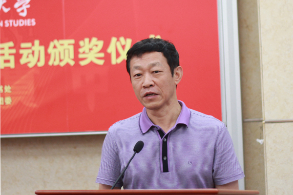 谢伟光简要介绍了此次活动并宣读了比赛的获奖名单。彭泽铨、许国彬、胡文涛等分别为获奖者颁发证书、奖金及奖品。特等奖获得者马泽卓的作品将作为广外龙卡(名校卡)的设计参考。