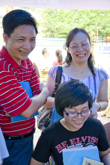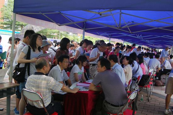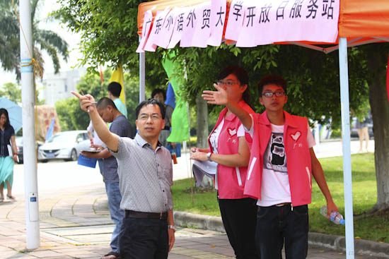 炎炎夏日,不辞辛苦前来咨询的家长接受志愿者的指引
