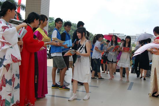 编者按 高考的硝烟逐渐散去,准大学生们都开始寻找自己喜欢的学校和专业。开放日给了他们直接接触信息的平台,今年的广外开放日,不仅看到了急切前来咨询的家庭成员,热情细心解疑答惑的学院代表,还有富有特色的吸引眼球的民族服装展示和那一群默默奉献的志愿者们。短暂而又忙碌的开放日,在这里,我们将一幕幕展现在眼前的情景与大家分享。